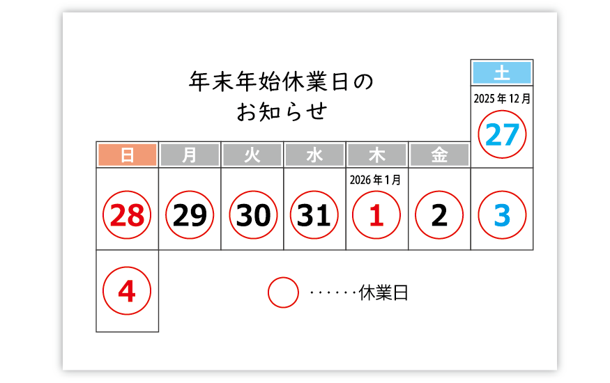 誠に勝手ながら12月27日(土)から1月4日(日)まで